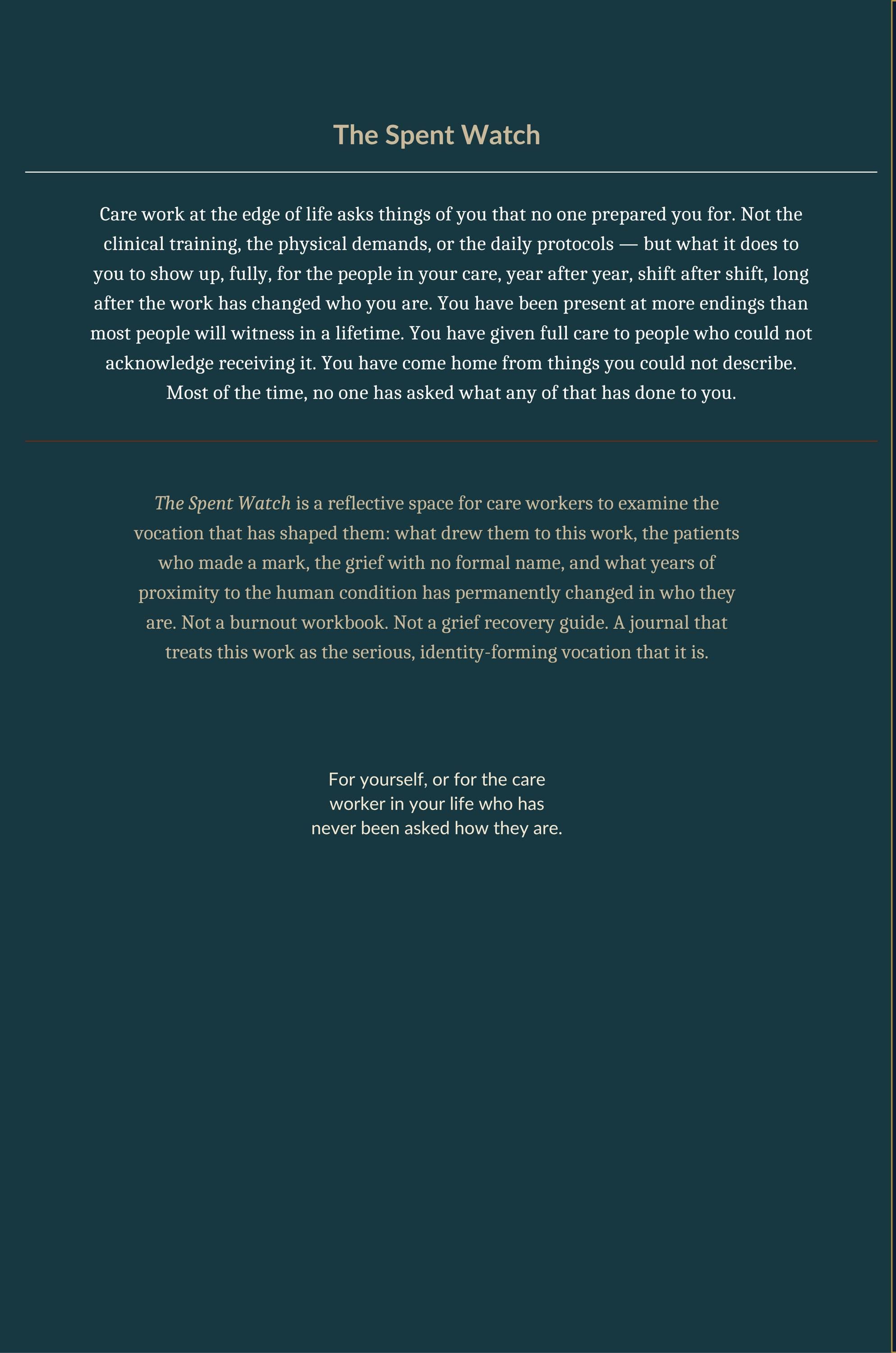 THE SPENT WATCH is a reflective journal for those who give professional care to